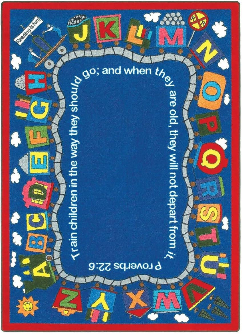 Hop aboard the Bible train and explore the alphabet boxcars loaded with fun. Proverbs 22:6 at the center of the classroom will be a bold reminder of the importance of educators.